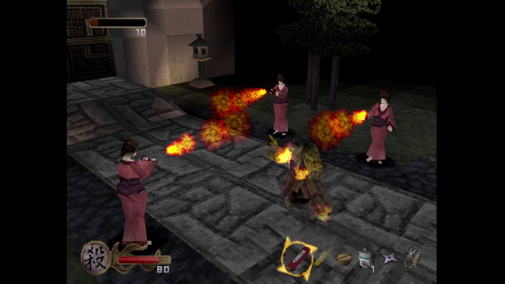 つぎに、天誅の最初のステージに出てくるキャラの踊り。というか変身シーン